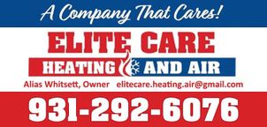 Family-owned HVAC company located in Pulaski, TN, offering service to all middle Tennessee! Our team specializes in service and repair of all brands . We are licensed and insured. Our technicians are EPA and OSHA certified with over 30 years of experience in the trade. Great things are possible with Elite Care!- no job is too big or too small. Give us a call today same day service!